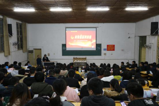 2017年12月6日晚七点,化学化工公司于电教105召开了以“努力学习,不辜负伟大的新时代”为主题的共青团系列讲座。此次讲座由化学化工公司党总支书记胡爱钦担任主讲人,学办老师易苏主持。