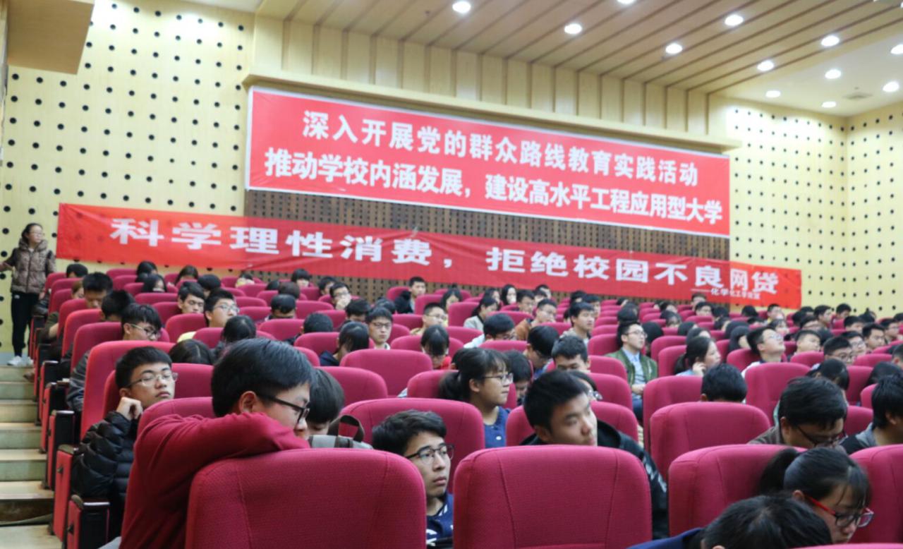 讲座伊始,陈景轩通过讲述几个深受校园贷危害的同学的例子来告诉我们校园贷中存在的陷阱,并且警告同学们应远离校园贷,进行安全理性的消费。随后,她又为我们分析了校园贷行业中一些让人不易察觉的“坑”,例如校园贷中的一些文字游戏,亦或是其中一些不为人知的隐藏手段。其中,陈景轩以“十个凡是”作为总结,告诉我们哪些贷款是有陷阱且具有高利息的,并且她还告诫大家,贷款需谨慎,如若迫不得已需要贷款,也应该咨询父母或老师的意见,不能贸然行事。最后,陈景轩为我们总结了几个防范校园贷危害的方法,并警醒我们天下没有免费的午餐,希望大家能树立正确的消费观,理性选择正确的贷款方式。讲座接近尾声,为表明自己抵制校园贷的决心,所有员工都在“科学理性消费,拒绝校园不良网贷”的横幅上签上了自己的名字。