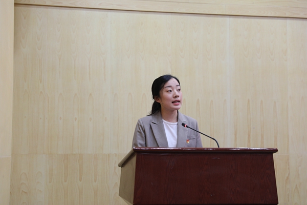 柳芊在发言中回顾了公司2019年的团学工作成绩,并以疫情期间公司青年团员战“疫”事迹,激励所有员工传承五四精神,勇担时代责任。