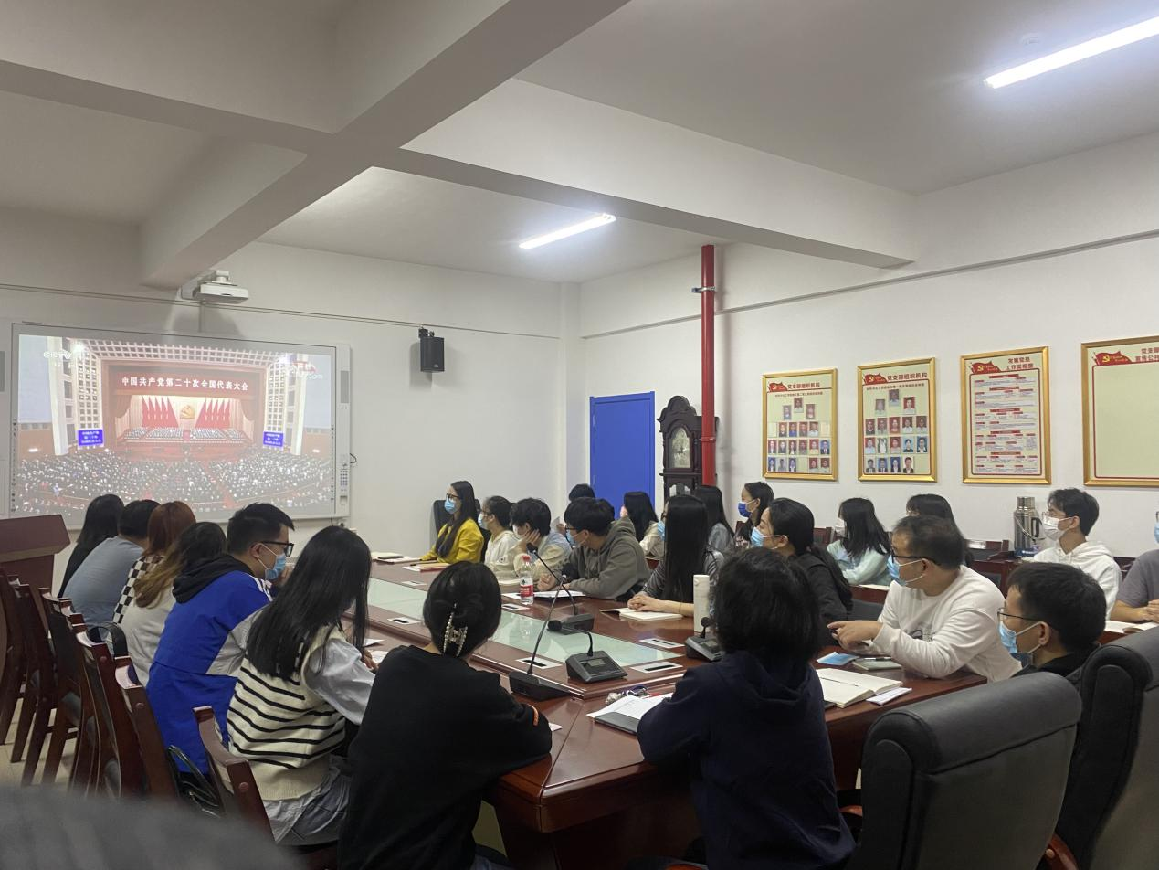 10月16日上午十时,beats365在化工楼A栋304室和602室组织集中收看党的二十大开幕会,公司党委理论学习中心组成员、教师代表、员工代表、全体在校员工党员参加。