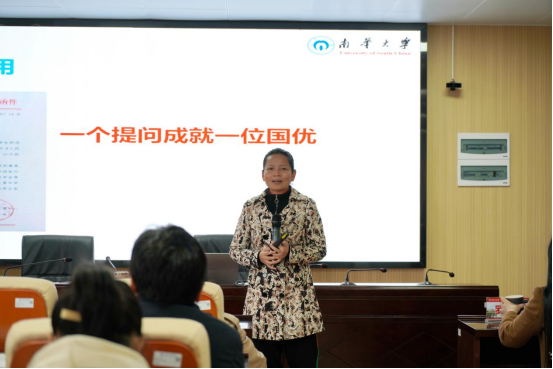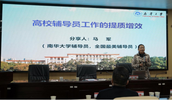 第十届全国高校辅导员年度人物、南华大学马军老师应邀作题为《高校辅导员工作的提质增效》的报告,内容涵盖“做好自己的职业生涯规划”“提炼高效工作方法技巧”“养成自律的工作学习习惯”三个部分。马军分享了她从“小白”到“优秀”再成长为“卓越”的27年辅导员职业生涯,以自身经历激励大家养成良好学习习惯,不断提高工作技能和水平。“教育唯爱与榜样”,她认为,每位辅导员都要有“做一辈子辅导员的情怀和心态,“爱”字当头,才能念好辅导员工作的“真”字经。整场报告站位高远、案例详实、深入浅出,既是一堂生动的理论学习课,又是一堂通俗易懂的业务培训课,充分体现了一位“员工工作一线的辛勤耕耘者”的初心使命和育人情怀。