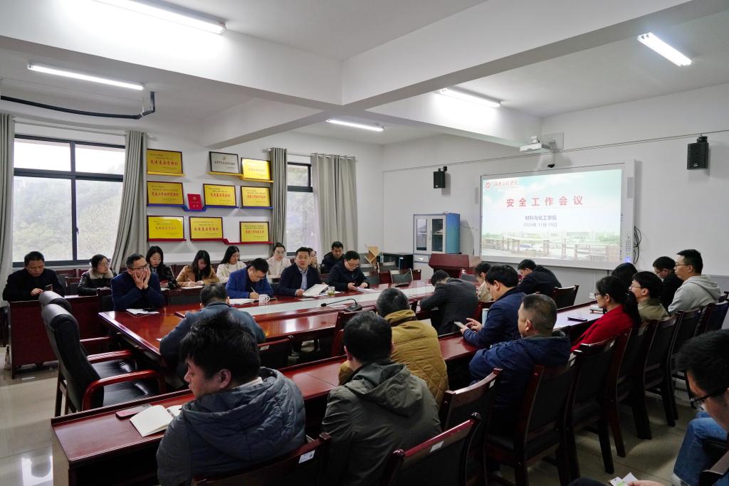 11月19日上午,公司在材化楼A304召开安全工作会议,院领导、教研室主任,实验室老师、班主任和全体辅导员参加,会议由公司党委书记徐粤宇主持。