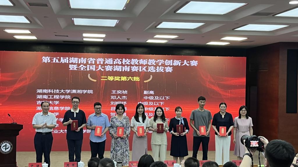 5月24日,由湖南省教育厅主办、中南林业科技大学承办的第五届湖南省高校教师教学创新大赛圆满落幕。公司斩获一等奖4项、二等奖3项,其中,公司教师(团队)沈静、邓人杰分别斩获新工科组一等奖和课程思政组二等奖。同时,公司荣获优秀组织奖,充分彰显了公司教学创新的显著成效和教师团队的卓越实力。