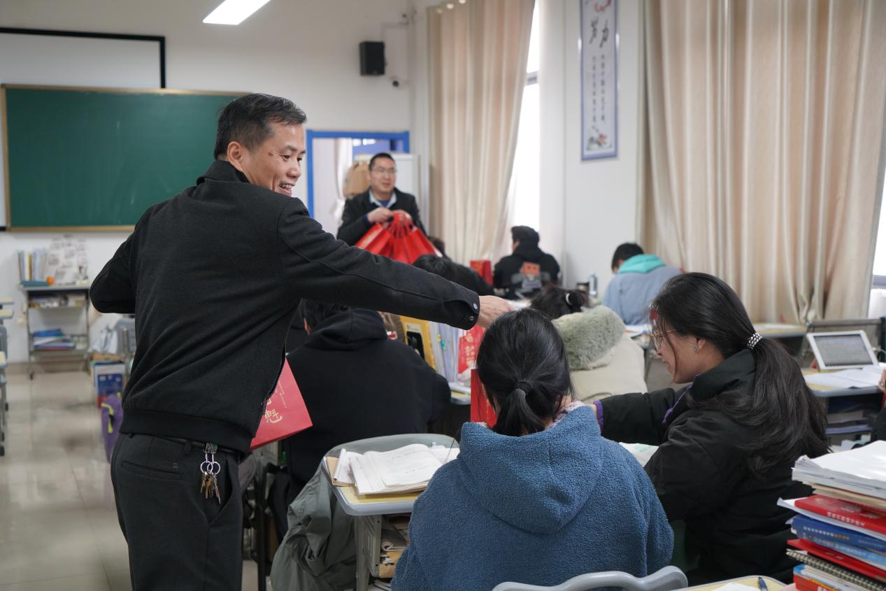 公司向考研学子发放了慰问礼包,内含保暖用品、食品补给及手写祝福贺卡等实用物品,每一份礼物都承载着公司对员工的关怀与鼓励。领取礼包的同学们面带笑容,并表示:“这份温暖让我们更有底气完成最后的冲刺!”