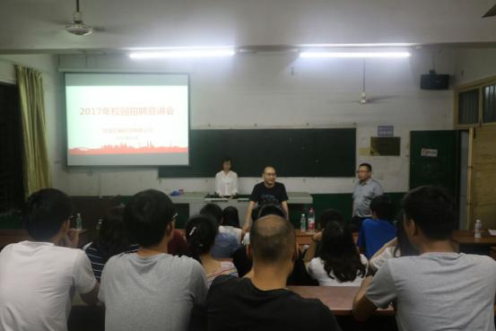 5月22日晚上7:30,劲派经编科技有限公司于公司四教102举行招聘宣讲会。劲派经编公司经理周茂平、化学化工公司轻化专业科研室老师陈镇出席此次招聘会,劲派经编公司员工刘小姐担任主讲人,此次招聘会主要面向轻化工程专业的员工。