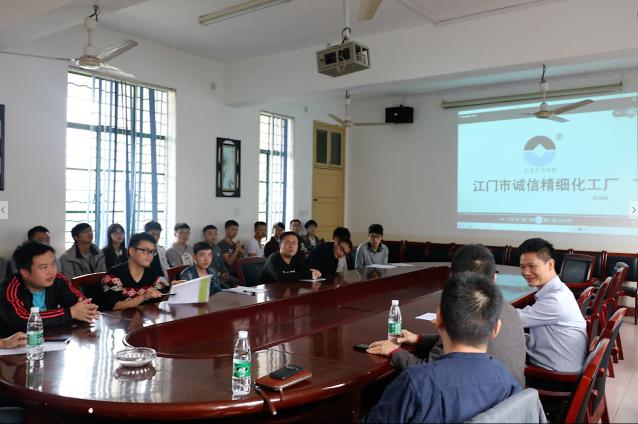 10月22日上午9点,江门市诚信精细发展有限公司携手化学化工公司在四教306举行招聘宣讲会。前来参与此次招聘会的有该公司经理宋文学、公司主管熬先生、化学化工公司老师肖鑫、吴锋景以及化工院部分大四毕业生。