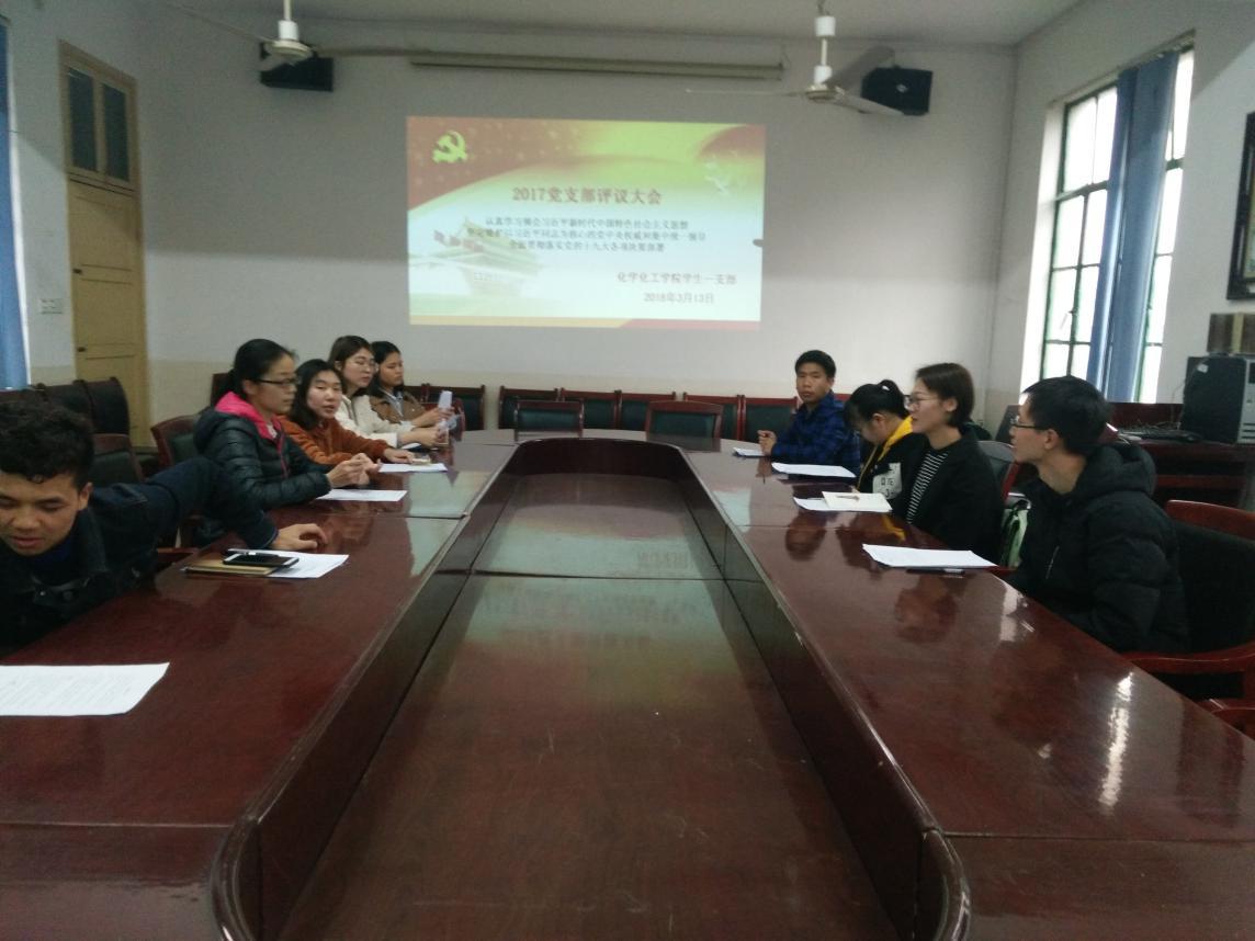 2018年3月13日,支部书记李芳郴老师于四教306主持召开化学化工公司党总支部员工第一支部2017年度专题组织生活会及党员民主评议会议。