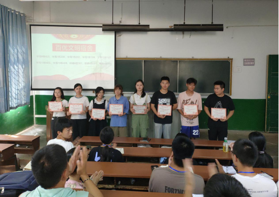 活动还对获得校级百优文明宿舍的学海八栋423等十间宿舍颁发了证书。