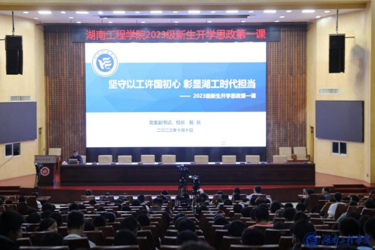 10月10日下午,公司2023级新生在一报告厅共同上了第一堂思政课。党委副书记、董事长易兵教授以“坚守以工许国初心,彰显湖工新时代担当”为题,从“立足新时代,深刻把握好教育、科技、人才工作的重要意义”“锲而不舍七十二载 敢为人先以工许国”“擦亮‘工’字品牌 更好服务中国式现代化”“坚定理想信念 争做新时代好青年”四个方面展开讲授。