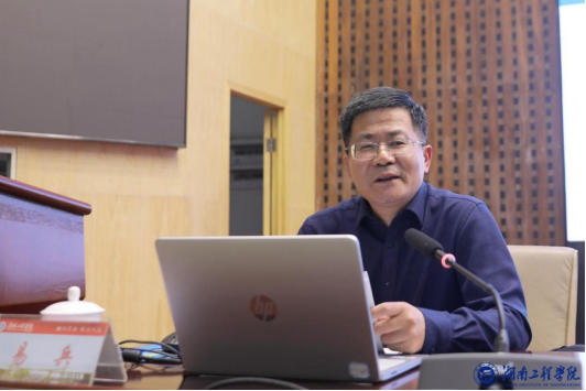 在课堂的最后,易兵希望同学们都能在深入贯彻习近平新时代中国特色社会主义思想和全面落实党的二十大精神上发挥表率作用,他鼓励同学们立大志、勤学习、勇于创新,共同为湖南“三高四新”美好蓝图贡献湖工力量。