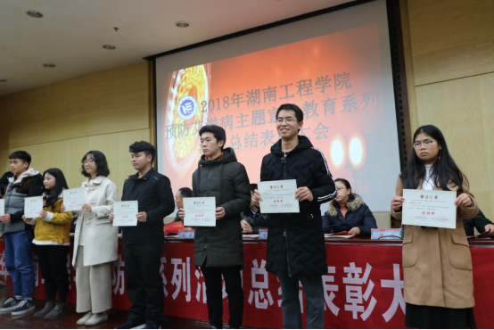 会议伊始,纺织服装公司健康讲师熊佳丽同学担任主讲,为在座的同学带来了一堂生动有趣的防艾知识介绍课。在座同学踊跃发言,积极答题。随后,主持人以有奖竞猜的形式与在座同学进行了互动与交流。紧接着,副董事长杨剑瑜发表重要讲话,校学联主席廖华发表防艾演讲。在座同学认真听讲,反响热烈。最后,由后勤处处长颜卫人公布表彰大会的表彰名单,相关获奖人员上台合影留念。此次表彰大会中,公司在防艾特色活动成果汇报中荣获第六名,公司吴旭敏同学荣获艾滋病防治知识“健康讲师”大赛优胜奖,同时公司多名员工也在防艾主题宣传教育系列活动中获优秀个人奖。