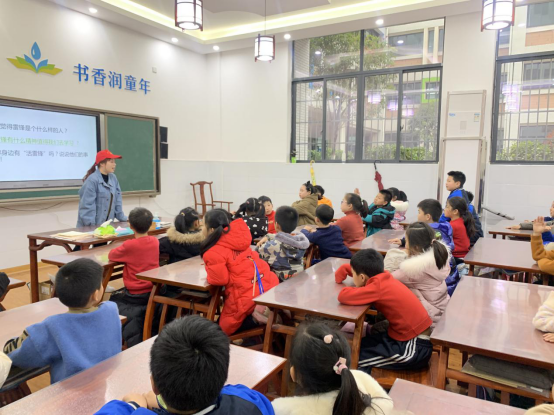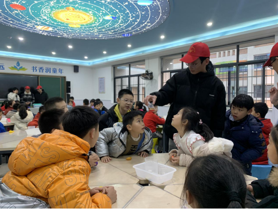 志愿者们用浅显易懂的语言向小朋友们讲述了雷锋是谁、雷锋做了什么、什么是雷锋精神、我们应该怎样向雷锋学习,小朋友们在台下听得非常认真。互动时,志愿者们问道“在生活中,你们有遇到过向雷锋叔叔一样做好事的人吗?”小朋友们积极举手,后排的同学把手举得高高的,甚至站起来抢答。有个小朋友说,“有一次我在上学的路上摔倒了,是我的同学把我扶起来,还一直安慰我,关心我,让我觉得很温暖。”,听到孩子们纯真无邪的话语,在场的志愿者无不感觉心中善意涌现,小小的人儿,闪着如金子般耀眼的光芒。随后,志愿者带着小朋友们一起做游戏、进行科普课堂活动,小朋友们兴趣满满,现场气氛十分热烈。结束时,志愿者哥哥姐姐们为小朋友们分发礼品、零食,鼓励他们积极参加社会实践活动,帮助身边有需要的人。
