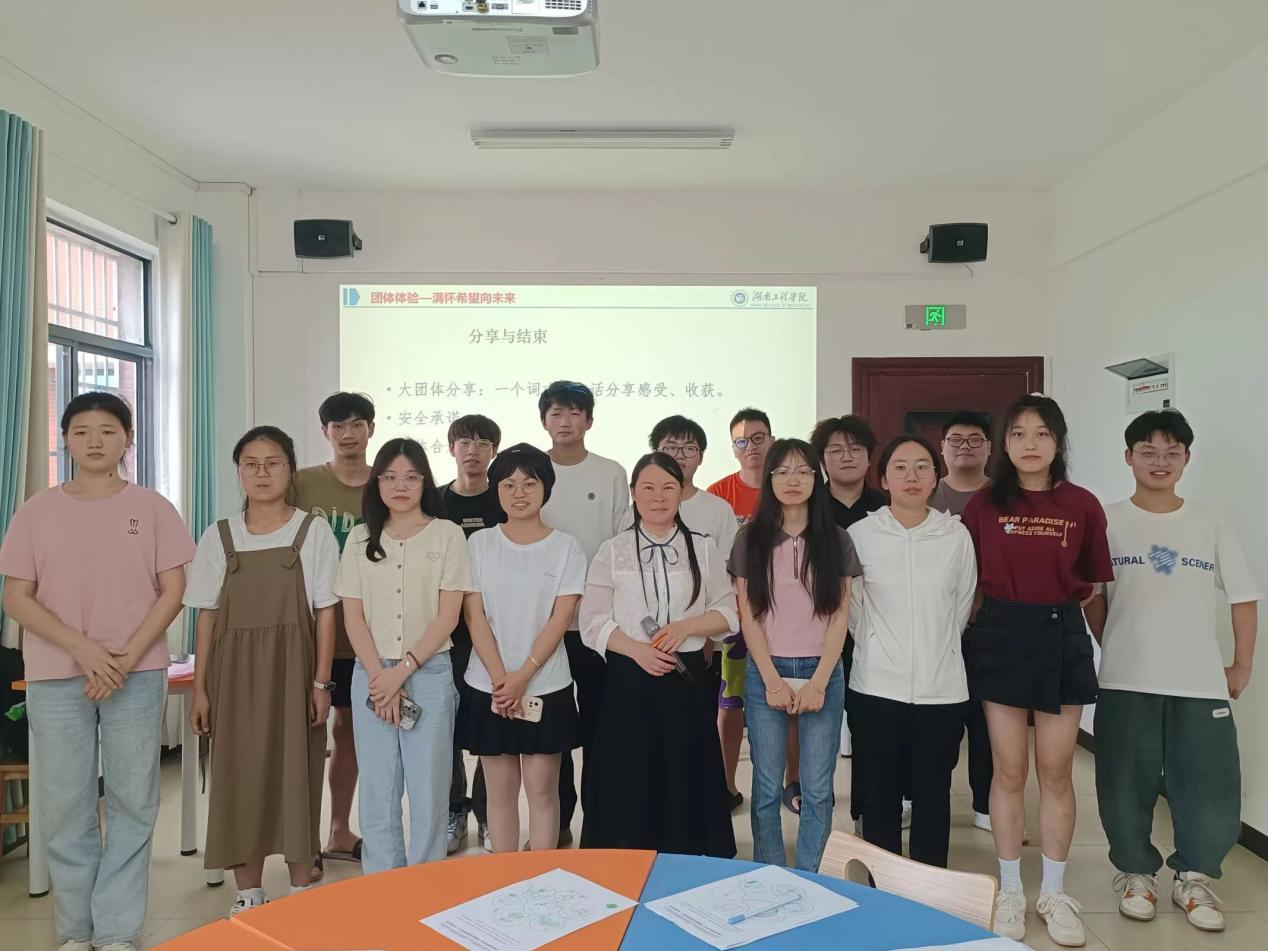 活动中,黄玉娟带领同学们开展“我希望”和“希望曼陀罗”绘画练习,并且同学们在组内和组间分享自己的梦想与目标,在活动过程中学会正确认识自我。最后,黄玉娟邀请大家围成一个大圈,同学们依次用一个词或一句话表达了参与本次团体辅导活动的感受和收获,随后同学们围绕感恩和温暖起誓。