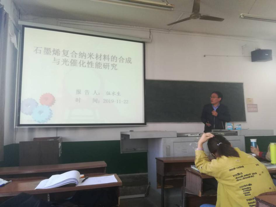 最后,伍水生以“石墨烯复合纳米材料的合成与光催化性能研究”为主题,从光催化技术应用瓶颈开始,结合自身研究成果,从光催化技术的原理、石墨烯载体的优势等方面,系统地讲述了氧化锌-石墨烯,镍锌铁氧体-石墨烯复合纳米材料和可控合成、表征与光催化性能研究,展望了光催化技术在环境中的应用前景。