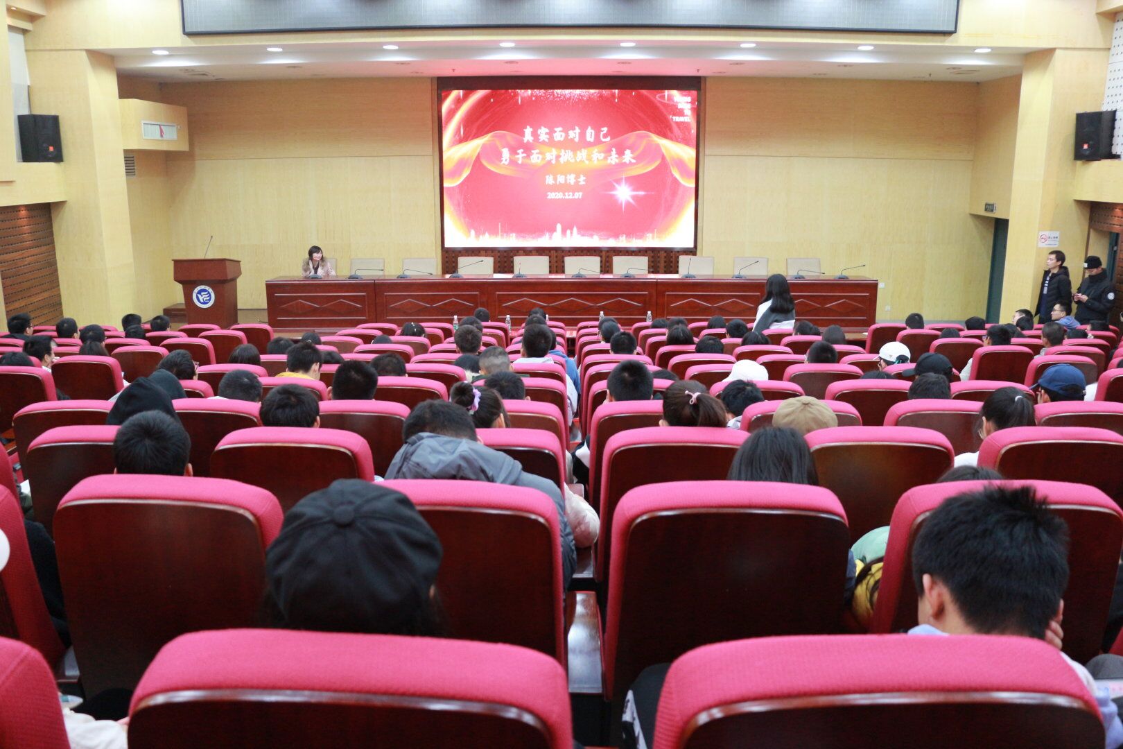 12月7日晚,海归的陈阳博士回到母校,以“真实面对自己,勇于面对挑战和未来”为主题在二报告厅为beats365学子带来了一场精彩讲座。beats365副经理张何主持讲座,公司辅导员和200余名员工到场聆听。