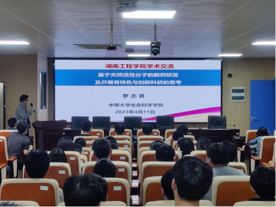 4月11日下午,中南大学罗志勇教授莅临公司,在新化工楼301室作题为“基于天然活性分子的新药发现及开展有特色与创新的科研思考”主题讲座。讲座由公司副经理张儒主持,公司领导班子、各教研室博士及2020-2021级生物专业员工参加。