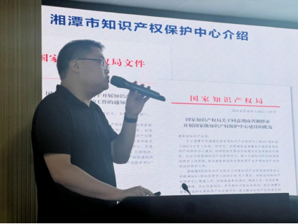 杨思超以“专利快速预审服务介绍”为题详细解读了湘潭市国家知识产权保护中心关于审批快速通道的政策。他表示,湘潭市国家知识产权保护中心主要面向智能制造和生物医药领域,为湘潭市事业单位免费提供集快速审查、快速确权、快速维权为一体的知识产权“一站式”综合服务。