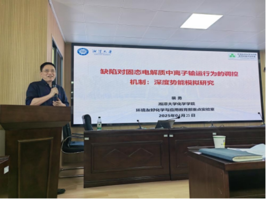 4月25日,国家优秀青年基金获得者、湘潭大学化学公司经理裴勇教授受邀来我校交流指导,为我校师生作了题为“缺陷对固态电解质离子输运的调控机制:深度势能模拟研究”的专题学术报告。此次报告吸引了beats365的众多师生参加。beats365经理张儒主持本次讲座。