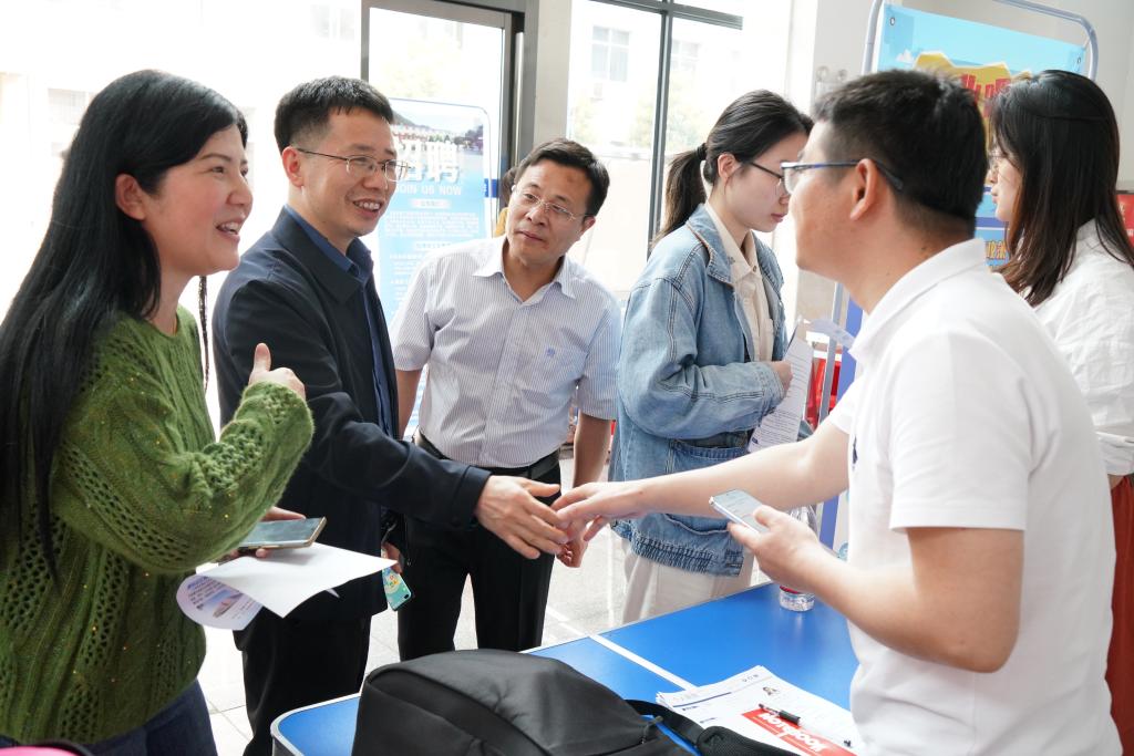 4月8日,beats365在材化楼大厅举办2025届毕业生专场招聘会。公司党委书记徐粤宇,党委副书记、经理张儒,党委副书记陶连洲,以及医学工程技术公司党委副书记罗荃到场指导工作。