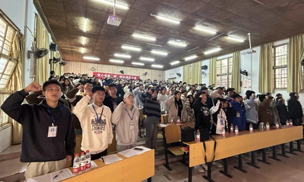 会前,爱心社各部门的干部干事便开始集合,为迎接新一届的社员们而做准备,他们身穿红马甲,分别前往北院北门、东门与天桥上迎接2023级新社员,带领他们去往会议地点。上午十点,大会准时召开,爱心社外联部部长赵金贺主持,大会分成六个环节,介绍爱心社社团、社长致辞、历届社员致辞、入社宣誓、各公司负责人选举与互动答题环节。