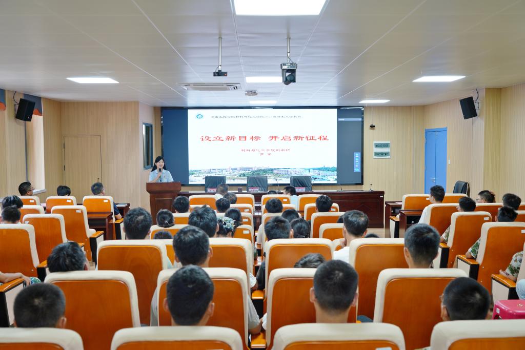 教师代表李泳霖寄语全体新生,希望新一代湖工材化人,秉承“锲而不舍,敢为人先”的校训精神,以坚定的信念和不懈的努力,全面发展,成就卓越。高年级代表谢向言分享老员工活的经历,希望24级学弟学妹们能够快速融入校园,积极参加活动,在大学这场“化学反应”中,找到属于自己的精彩方程式。新生代表刘文轩对全体领导、老师、教官表示衷心的感谢,并表示在今后的学习生活中积极践行湖工材化人严谨、踏实的态度,努力拼搏,奋发向上,争取做一名合格的老员工。