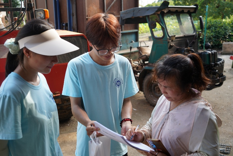 当日下午,在锦石乡乡长彭龙、副乡长陈柳的大力支持下,实践团走进湘潭县文佳村开展首场调研活动。队员们通过入户走访、问卷调查、现场讲解等形式,向村民普及垃圾分类知识,推广绿色环保理念;同步开展心理健康问卷调查,为后续精准服务收集基础数据。
