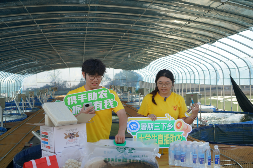 在助农直播中,学子化身"带货主播",通过泉水检测报告、瘦身鱼养殖日记、贡米农耕故事等内容,曝光人数近1800人次,点赞4.4万,有效拓宽农产品宣传渠道。