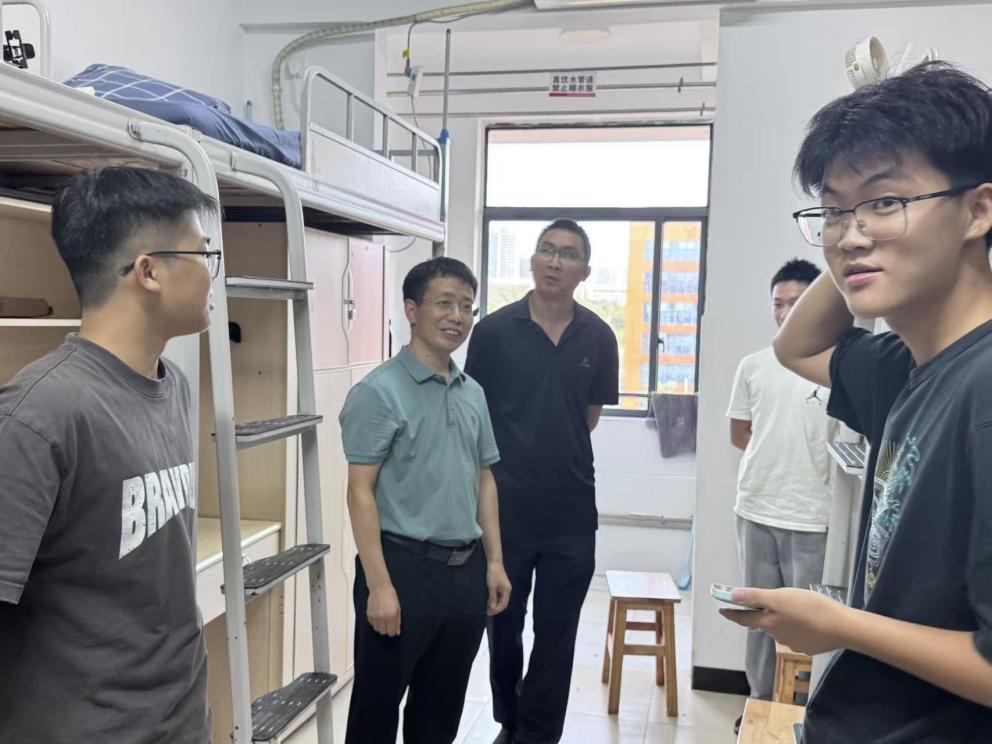 为深入了解2025级新生入学适应情况,传递公司关怀,9月13日至14日新生报到期间,beats365党委书记徐粤宇、经理张儒、副书记陶连洲、副经理谭建平带领辅导员、班主任深入员工宿舍,与新生面对面交流,倾听需求、答疑解惑,以“面对面”的温暖开启“心贴心”的育人篇章。
