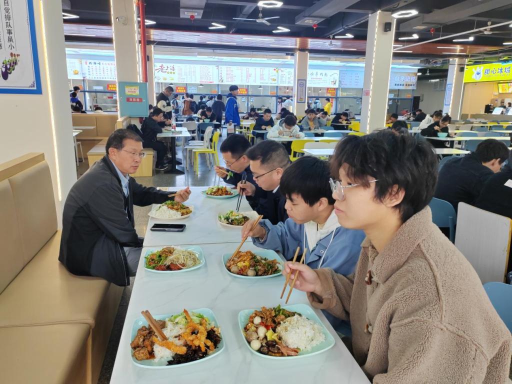 讲座结束后,熊伟还走进公司食堂就餐,继续和师生深入交流。