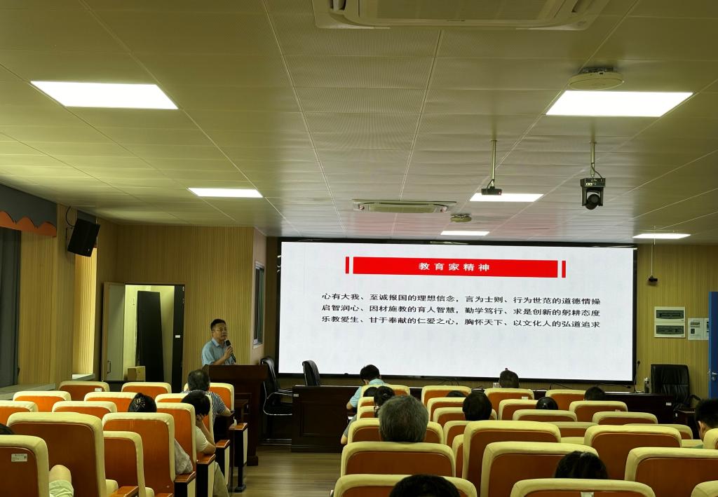 随后,公司党委副书记陶连洲为所有教职工上了一堂题为《弘扬教育家精神,担当新时代使命》的生动党课。他阐述了教育家精神的核心内涵:“心有大我,至诚报国的理想信念;言为士则,行为世范的道德情操;启智润心、因材施教的育人智慧;勤学笃行、求是创新的躬耕态度;乐教爱生,甘于奉献的仁爱之心;胸怀天下,以文化人的宏道追求。”鼓励全体教师相互支持,共同进步,为教育事业的高质量发展不懈奋斗。